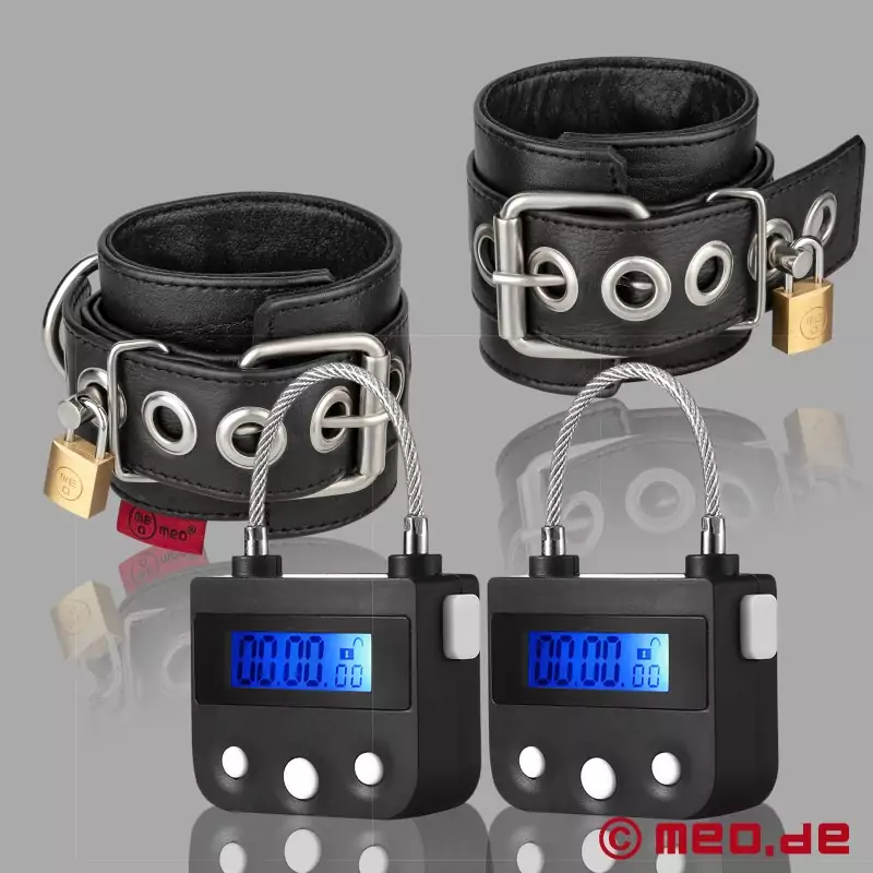 Nasze kajdanki na nadgarstki z elektroniczną blokadą czasową zamykają się nawet na 4 dni. Dzięki temu spełnisz każde marzenie o self bondage.