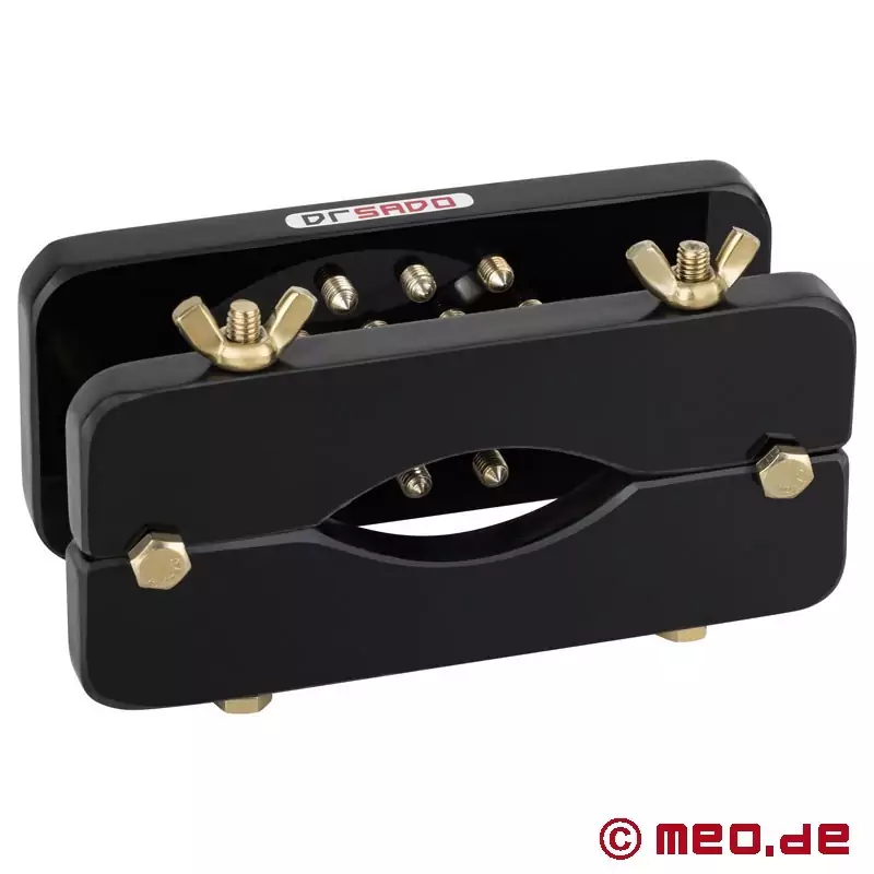 Wyraźna kontrola, mocny design - i dokładnie taki rodzaj intensywności CBT, jaki doceniają eksperci BDSM. Dwie solidne, czarne płyty akrylowe, złote kolce i regulowane elementy ze stali nierdzewnej sprawiają, że ten CBT Ball Crusher jest stylowym, wysokiej klasy narzędziem do precyzyjnego nacisku i kontrolowanej stymulacji.