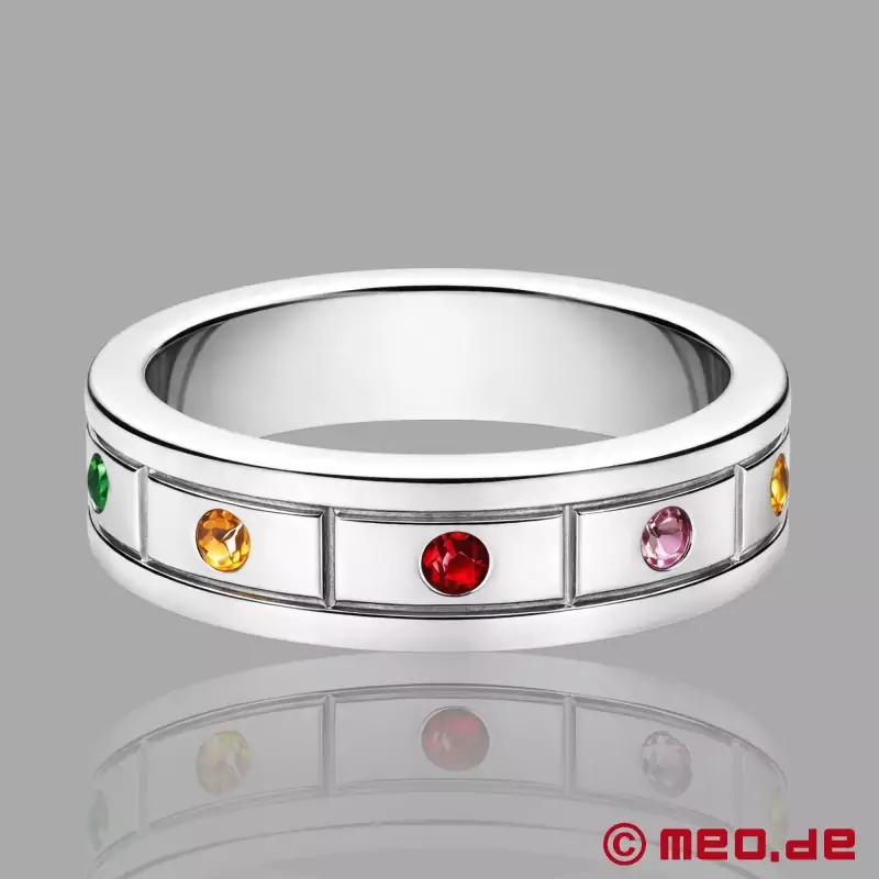 Każdy pierścień na kutasa jest kunsztownie ozdobiony wyborem wielokolorowych kryształów, które łapią światło i mienią się przy każdym ruchu. Precyzyjnie osadzone kryształy otaczają cały pierścień i tworzą efekt, który promieniuje luksusem i uwodzeniem. Dzięki solidnej, ale eleganckiej konstrukcji, ten pierścień na penisa oferuje unikalne połączenie komfortu i stylu.