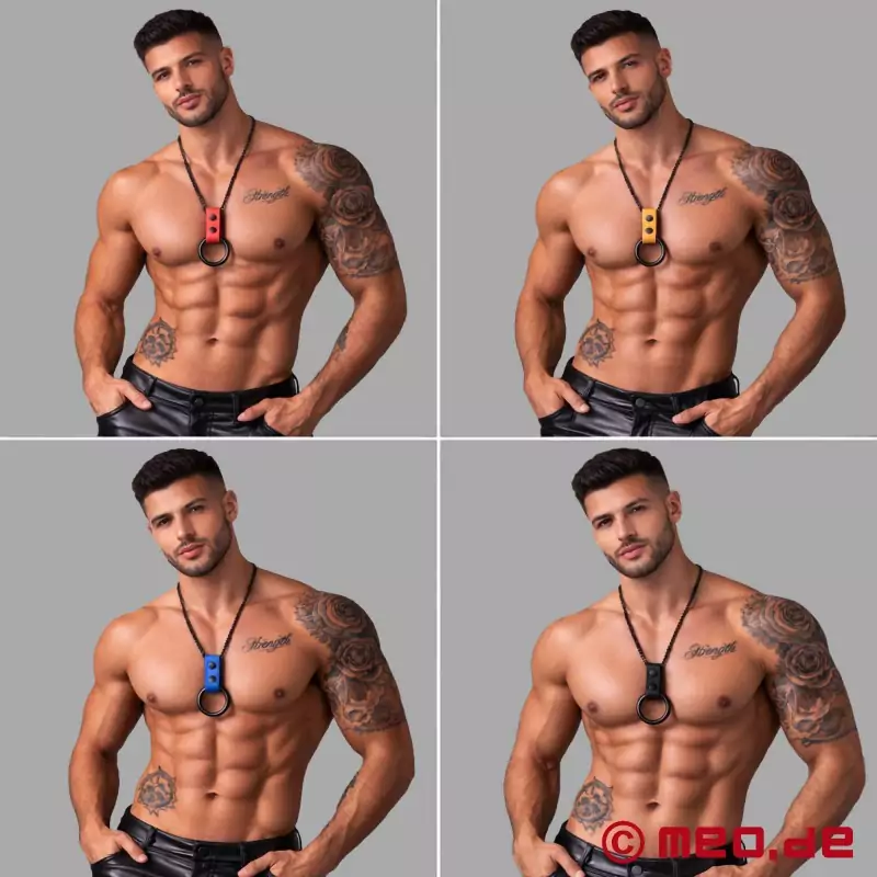 Chcesz mieć stylowy dodatek i ekscytującą zabawkę erotyczną w jednym? Dzięki temu wyjątkowemu czarnemu naszyjnikowi z dwoma zdejmowanymi pierścieniami na penisa możesz połączyć oba te elementy. Załóż naszyjnik na szyję, a zawsze będziesz gotowy, gdy twój partner będzie potrzebował twardego penisa.