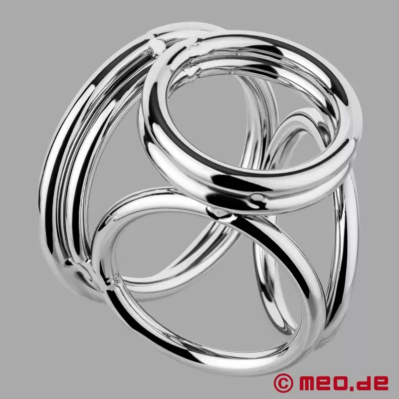 CobraCage™ składa się z kilku pierścieni ze stali nierdzewnej. Jeden pierścień otacza trzon penisa, dwa inne pierścienie owijają się wokół jąder, a pierścień bazowy znajduje się u podstawy penisa i jąder. Ten cockring to zabawka erotyczna dla koneserów: szczególnie twarda i długotrwała erekcja, wybrzuszone jądra, intensywne doznania i wyraźny efekt push-up są praktycznie gwarantowane dzięki temu połączeniu rozciągacza jąder i cockringu.