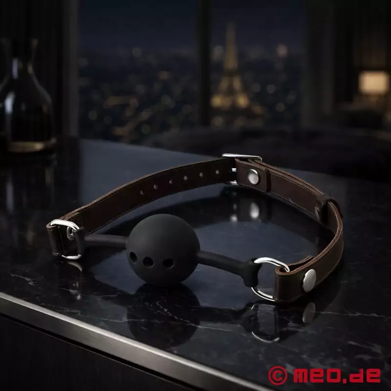 Ursprünglich hatten wir diesen Ballknebel bei MEO bestellt, um auch mal "optisch etwas anderes" zu haben. Das dieser Knebel zur Nummer EINS wird, wenn es darum geht Ruhe zu haben, hätten wir beide nicht gedacht. Wahrscheinlich liegt es an seiner Bauform mit der geraden "Stange" also die Verbindung zwischen Ball und Kopfgurt, die ein herausdrücken unmöglich macht.