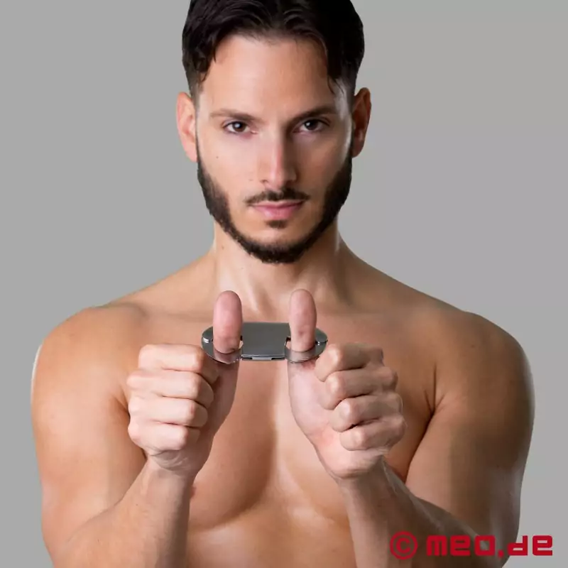 Kajdanki na kciuki to specjalne metalowe pętanie kciuków. Mogą być również używane do krępowania palców. Wykonane z wytrzymałej stali nierdzewnej, są trwałe i odporne na zużycie. Szczególną cechą jest system podwójnego zamka, który zapewnia dodatkowe bezpieczeństwo.