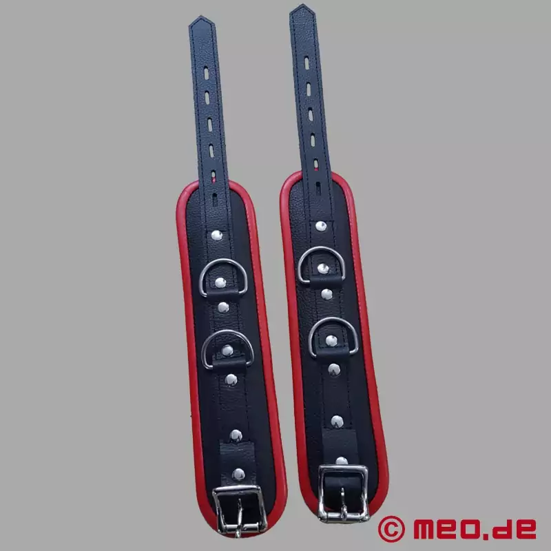 Maksymalna funkcjonalność połączona z klasycznym designem! Rezultat: kajdanki na kostki w świetnych kolorach, które nie tylko dobrze wyglądają i są bardzo wygodne w noszeniu, ale także imponują przystępną ceną. Czarno-czerwone kajdanki na kostki do bondage są wyposażone w 2 pierścienie, do których można przymocować np. rozporek.