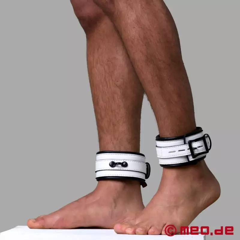 Nasze kajdanki na kostki mają D-ring, który umożliwia przymocowanie różnych akcesoriów BDSM z kolekcji Venezia. Górne paski kajdanek na kostki z regulacją rozmiaru wyposażyliśmy w zamykane klamry ze stali nierdzewnej. Dzięki temu możesz zablokować kajdanki na kostki podczas sesji lub Self Bondage za pomocą małej kłódki lub naszej elektronicznej blokady czasowej MEOBOND (dostępnej osobno).