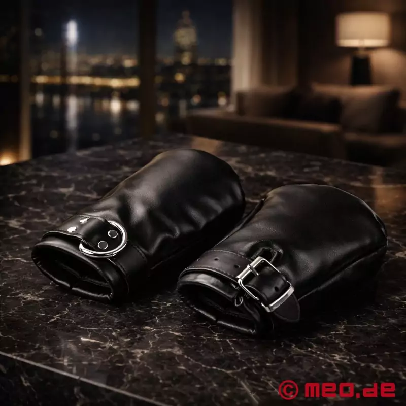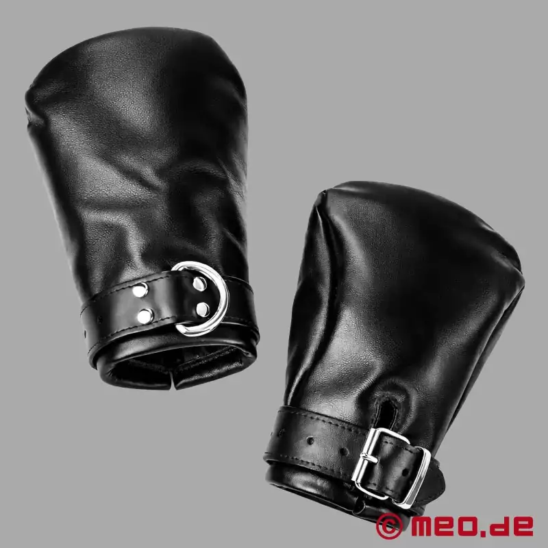 Nasze wyściełane skórzane rękawice do bondage Fist Mitts są częścią każdego dobrego sprzętu BDSM. W tych rękawicach dłonie są siłą zaciskane w pięść. Rękawica i regulowane zapięcie na klamrę utrzymują pięść zaciśniętą i dobrze zamkniętą, dzięki czemu palce nie mogą być już używane.