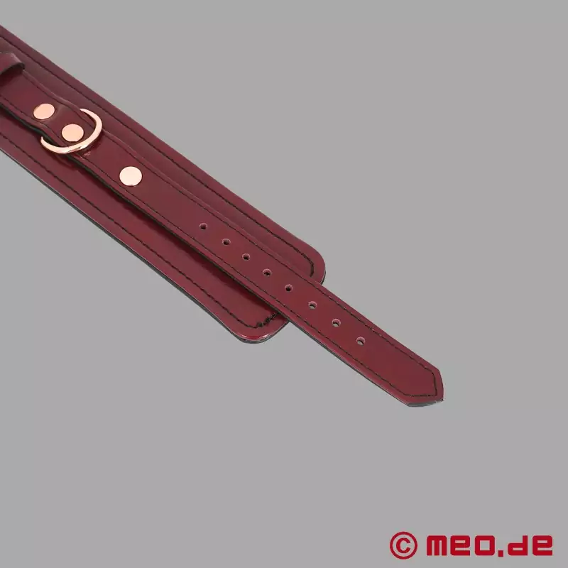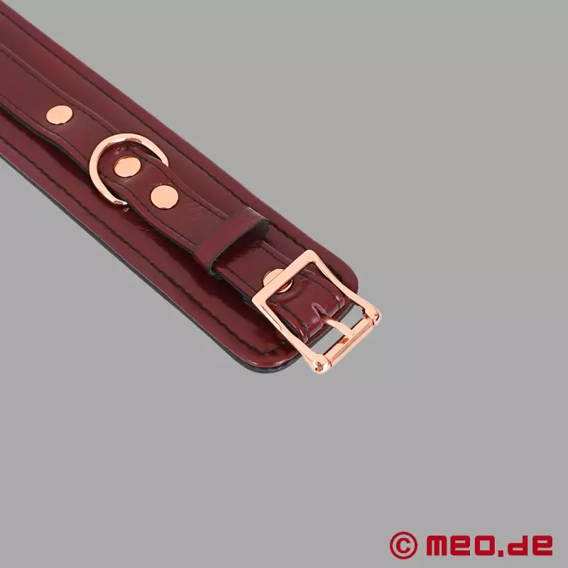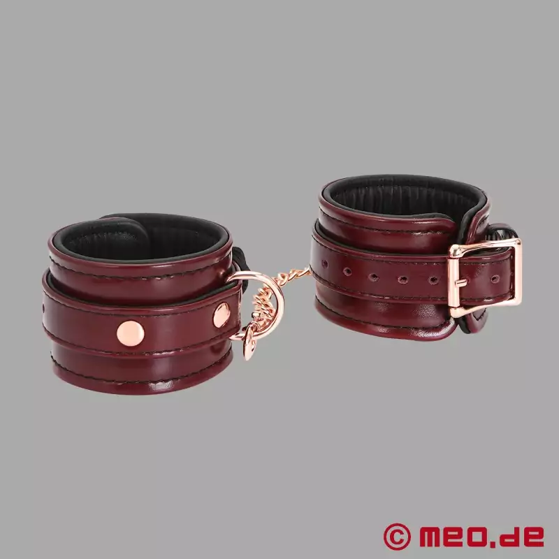 Dzięki wyrazistemu kolorowi, głębokiej bordowej czerwieni, ta kolekcja od MEO® nie tylko symbolizuje elegancję, miłość, pasję, romantyzm i ciepło; ma również na celu podkreślenie emocjonalnej więzi między Top i Sub podczas bondage. Metalowe elementy w kolorze różowego złota, które idealnie pasują do projektu, nadają produktom wspaniały kontrast.