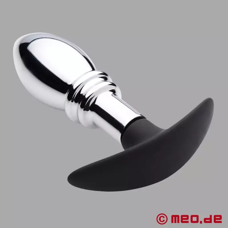 Metalowy korpus (butt plug) wykonany jest z solidnego, ręcznie polerowanego aluminium i połączony z podstawą wykonaną z elastycznego silikonu. Dzięki temu możesz cieszyć się zaletami obu światów: Uczucie bycia całkowicie wypełnionym i cieszenie się ciężkim ciężarem wewnątrz ciebie, ale jednocześnie poleganie na elastycznej podstawie, która zasysa się między policzkami tyłka, zapewniając bezpieczną i wygodną przyjemność.