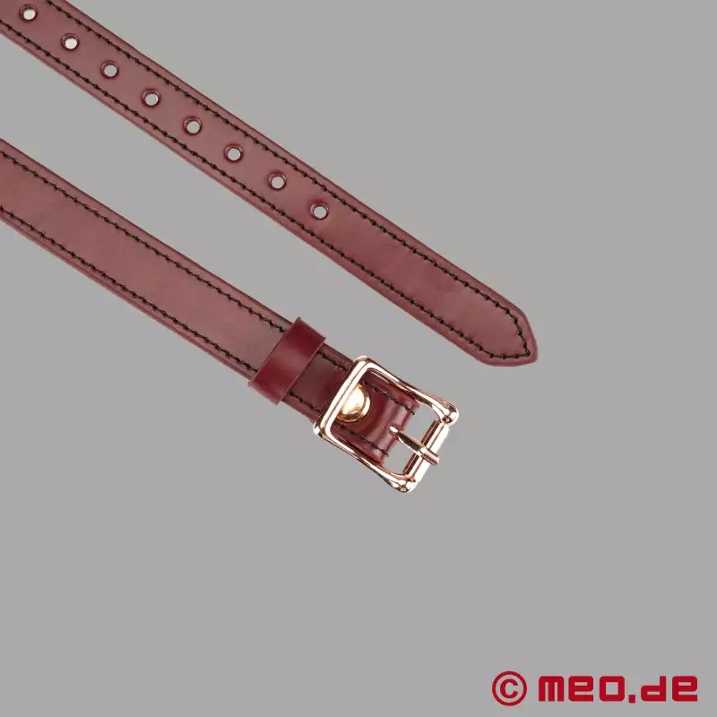 Dzięki wyrazistemu kolorowi, głębokiej bordowej czerwieni, ta kolekcja od MEO® nie tylko symbolizuje elegancję, miłość, pasję, romantyzm i ciepło; ma również na celu podkreślenie emocjonalnej więzi między Topem i Subem podczas zniewolenia. Metalowe elementy w kolorze różowego złota, które idealnie pasują do projektu, nadają produktom wspaniały kontrast.