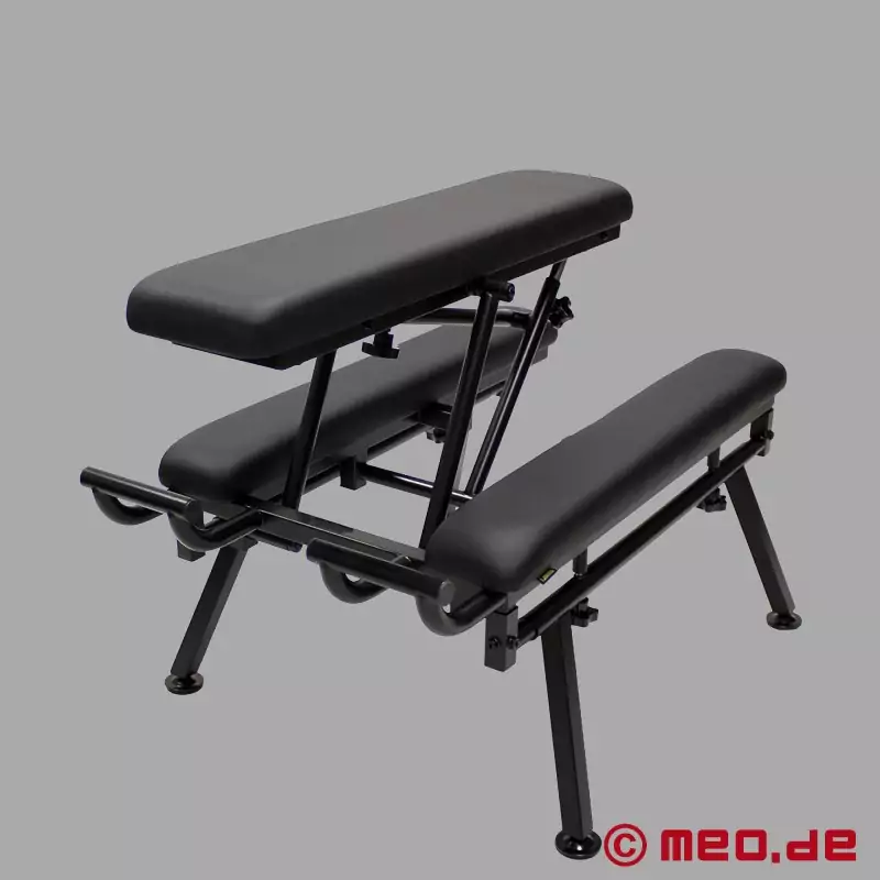 FuckBench™ to profesjonalny mebel BDSM do prywatnych lub profesjonalnych sesji. Trzy obficie wyściełane powierzchnie podparcia, zintegrowane uchwyty i ciężka, solidna konstrukcja ramy zapewniają stabilność i komfort - nawet podczas intensywnych scen.