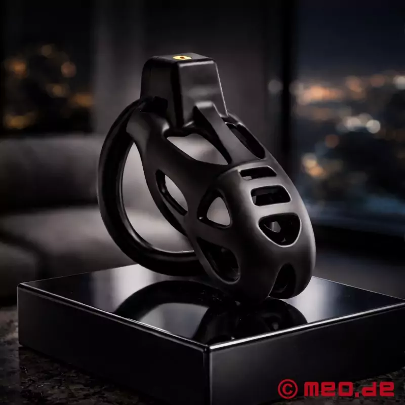 Dzięki NoPacha ® Total Submission mężczyzna może doświadczyć całkowitego zniesienia samokontroli seksualnej. Pas cnoty zawiera wysokiej jakości mechanizm blokujący i po założeniu nie można go zdjąć bez klucza. Oznacza to, że wszystkie czynności seksualne są bezlitośnie uniemożliwione dzięki całkowicie zamkniętej klatce cnoty. Pas cnoty jest wyposażony w 3 anatomicznie ukształtowane pierścienie na jądra/penile (49 mm, 51 mm i 54 mm), dzięki czemu można go idealnie dopasować do użytkownika. Idealnie dopasowana do kształtu męskich genitaliów klatka na penisa ma wewnętrzną średnicę około 37 mm i długość 93 mm.