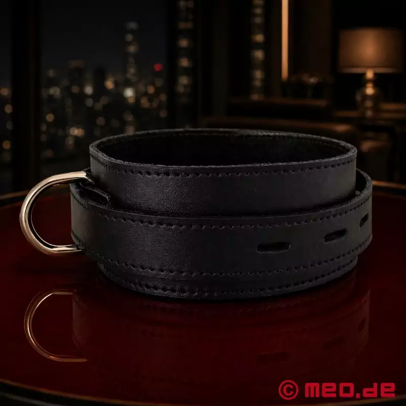 Zamykana skórzana obroża DominateMe™ od MEO® jest wyposażona w opcjonalny pasek z haczykiem na nos i dlatego jest szczególnie odpowiednia do intensywnych scenariuszy zniewolenia i dominacji. Połączenie wysokiej jakości prawdziwej skóry, stali nierdzewnej i najwyższej jakości wykonania, a także ukierunkowane prowadzenie głowy sprawiają, że to akcesorium BDSM jest szczególnie skutecznym wyborem do sesji niewoli, które charakteryzują się kontrolą, oddaniem i wyraźną dynamiką władzy.