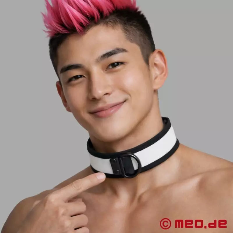 Neopren od dawna jest praktycznym i atrakcyjnym materiałem w sektorze BDSM. Brud, smary, oleje i pot można łatwo usunąć bez niepotrzebnego obciążania materiału. Co więcej, neopren jest w 100% wolny od lateksu i dlatego jest odpowiedni dla wielu alergików. Smukła obroża jest dostępna w kolorze czarnym i białym i jest idealna dla "ludzkich szczeniąt" i wszystkich miłośników BDSM, którzy cenią sobie efektowny wygląd, przyjemny komfort noszenia i przekonujący stosunek ceny do jakości.
