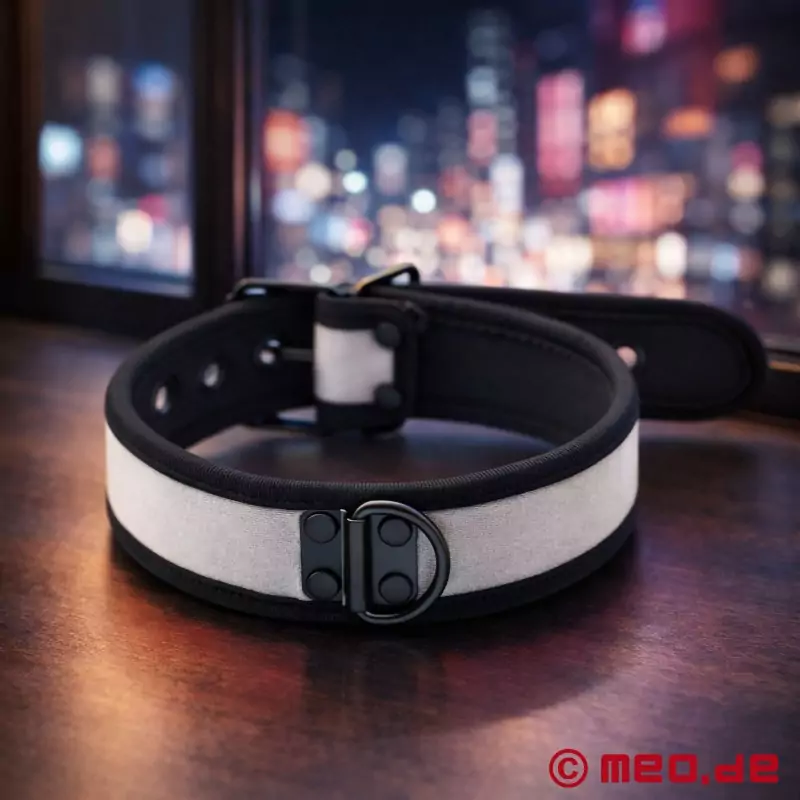 Neopren od dawna jest praktycznym i atrakcyjnym materiałem w sektorze BDSM. Brud, smary, oleje i pot można łatwo usunąć bez niepotrzebnego obciążania materiału. Co więcej, neopren jest w 100% wolny od lateksu i dlatego jest odpowiedni dla wielu alergików. Smukła obroża w kolorze czarnym i szarym jest idealna dla "ludzkich szczeniąt" i wszystkich miłośników BDSM, którzy cenią sobie efektowny wygląd, przyjemny komfort noszenia i przekonujący stosunek ceny do jakości.
