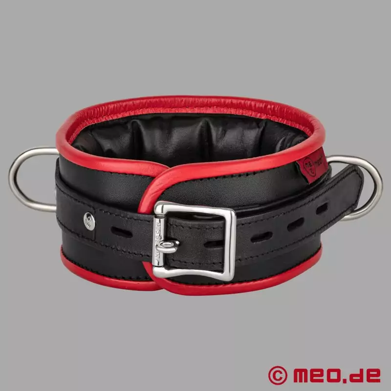Maksymalna funkcjonalność połączona z klasycznie pięknym designem! Rezultat: obroża BDSM w wyrazistych kolorach, która nie tylko dobrze wygląda i jest bardzo wygodna w noszeniu, ale także zachwyca przystępną ceną. Czarno-czerwona obroża BDSM jest wyposażona w pierścienie, do których można przymocować smycz lub łańcuchy.