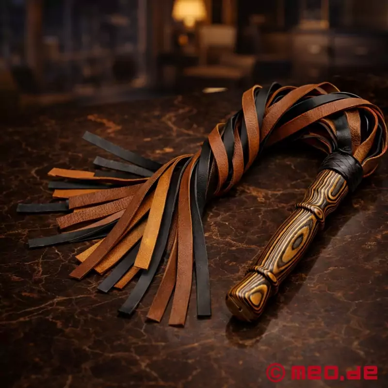 Die Zweifarbigen schweren Lederriemen geben eine tolle Optik und gibt dem Flogger einen tollen Charakter.