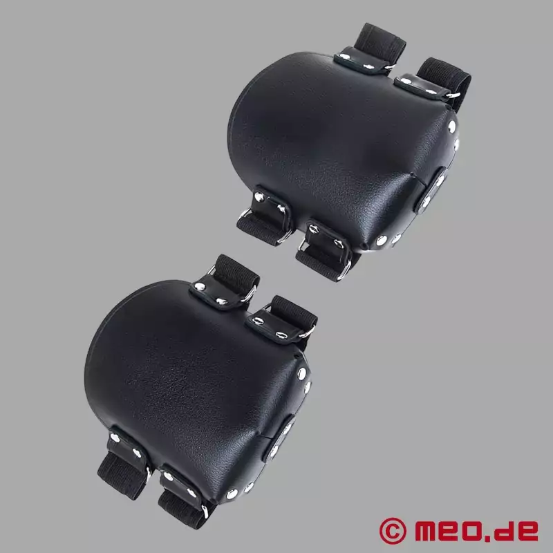 Die Knieschoner haben einen recht sinnvollen Einsatz. Wie der Name schon vorgibt, sollen sie die Knie schonen und schützen. Und es gibt einige Sachen, welche man auf den Knien erledigen kann. Von Oralverkehr, manche Sexpositionen bis hin zum Fetisch Play. Gerade als Puppy (Mensch der in die Rolle eines Hundes schlüpft und auch das verhalten imitiert) ist man hauptsächlich auf allen vieren. Das kann auf Dauer eine schmerzende Belastung sein Genau hier kommen die wunderbaren Knieschoner ins Spiel. Sie sind leicht anzuziehen und direkt einsatzbereit. Das abgerundete Ende soll dabei unter der Kniescheibe sitzen und das gerade geschnittene Ende mit den Nieten über der Kniescheibe.
