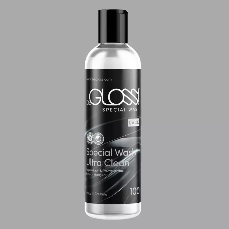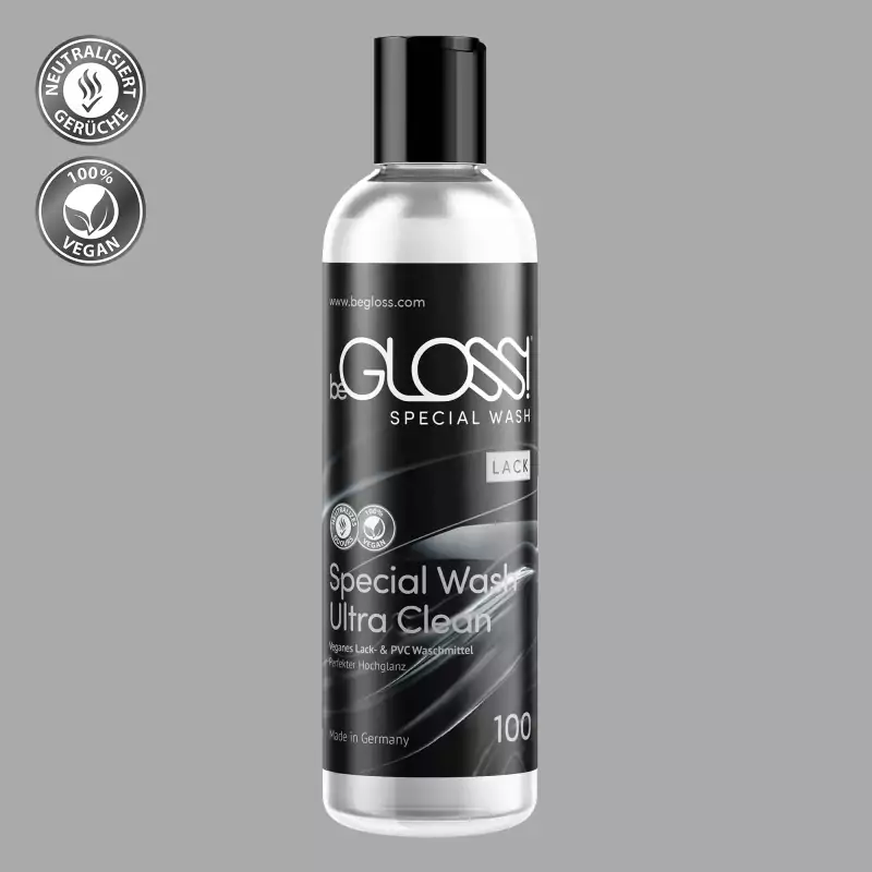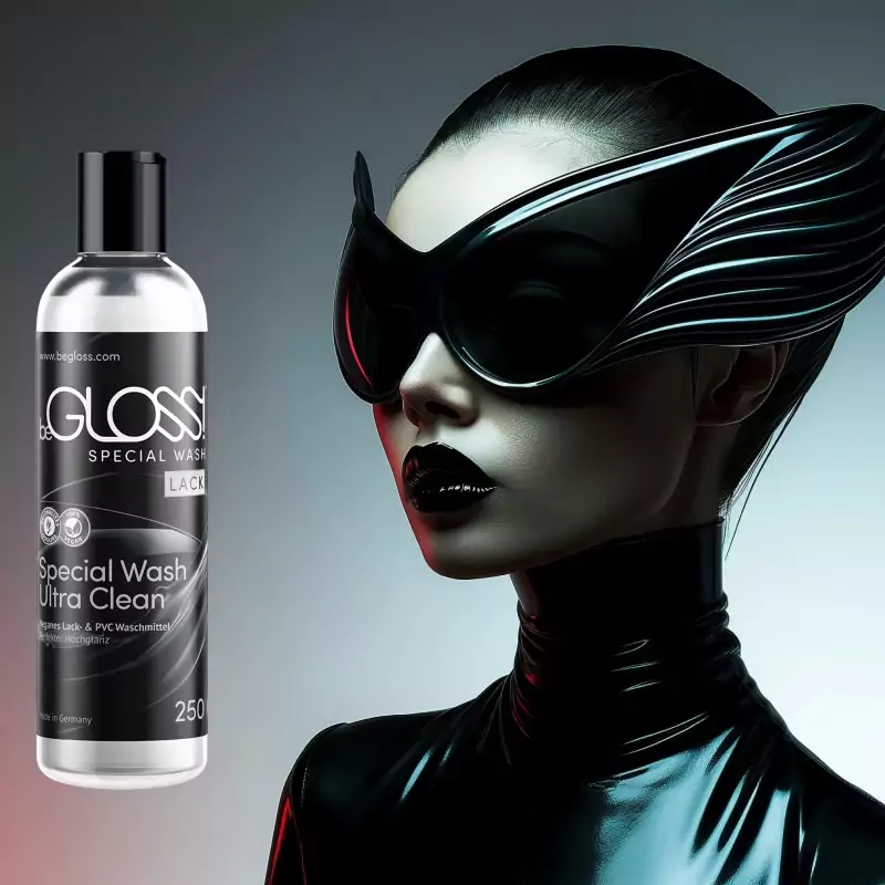beGLOSS® Special Wash™ to wegański środek czyszczący do bielizny z winylu, PVC i o wyglądzie winylu. Delikatnie, szybko i skutecznie usuwa zabrudzenia i nieprzyjemne zapachy, wspomaga pielęgnację odzieży erotycznej, bielizny i akcesoriów, pomaga zachować elastyczność materiału i może chronić materiał przed pękaniem. Wyprodukowano w Niemczech.