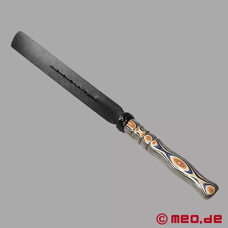 Wunderschönes Design. Der Holzgriff liegt perfekt in der hat und der Leder slapper tut sein übriges.