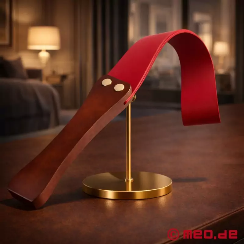 Wyposażony w solidną, brązową drewnianą rączkę i podwójny pasek wykonany z wysokiej jakości pelle, Slapper ma imponującą długość 47 cm (w tym 18 cm długości rączki) i szerokość 5 cm. Staranne połączenie wegańskiej pelle z drewnianym uchwytem za pomocą dwóch połączeń śrubowych zapewnia nie tylko maksymalne bezpieczeństwo użytkowania, ale także niezwykłą wytrzymałość.