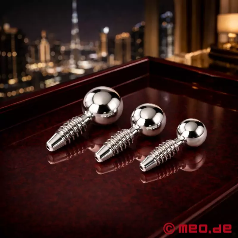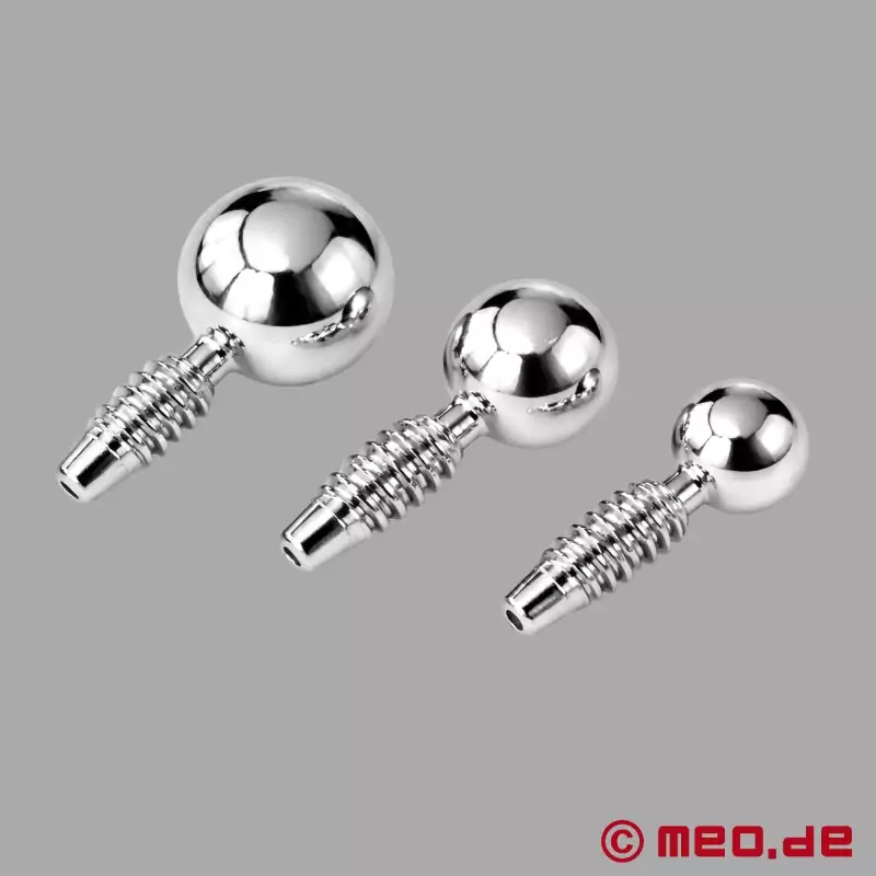 Nasze 3 różne rozmiary penisów plug do wkręcania, które pieszczotliwie nazywamy "śrubami do siusiania", są wykonane z medycznego stopu stali nierdzewnej.