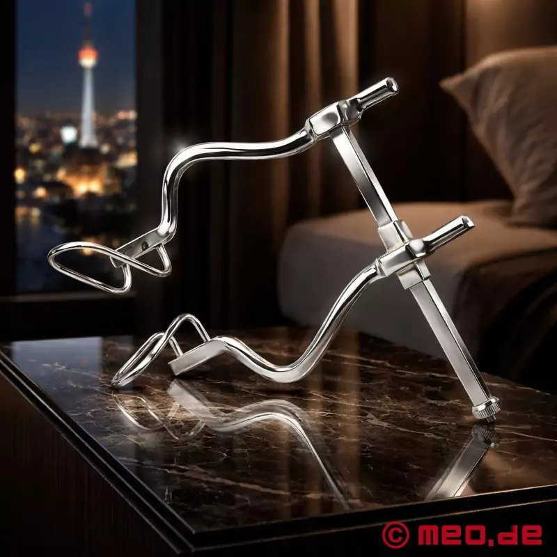 Wziernik analny HoleDominator™ od MEO® to pierwszy wybór dla miłośników anal stretching. Został opracowany do szeroko otwartego, kontrolowanego rozszerzania analnego. Dzięki bezstopniowej, samoblokującej się funkcji rozpieracza, ten profesjonalny wziernik umożliwia otwarcie do 14 cm, a tym samym precyzyjnie regulowane rozciąganie analne dla wymagających sesji BDSM i odgrywania ról.