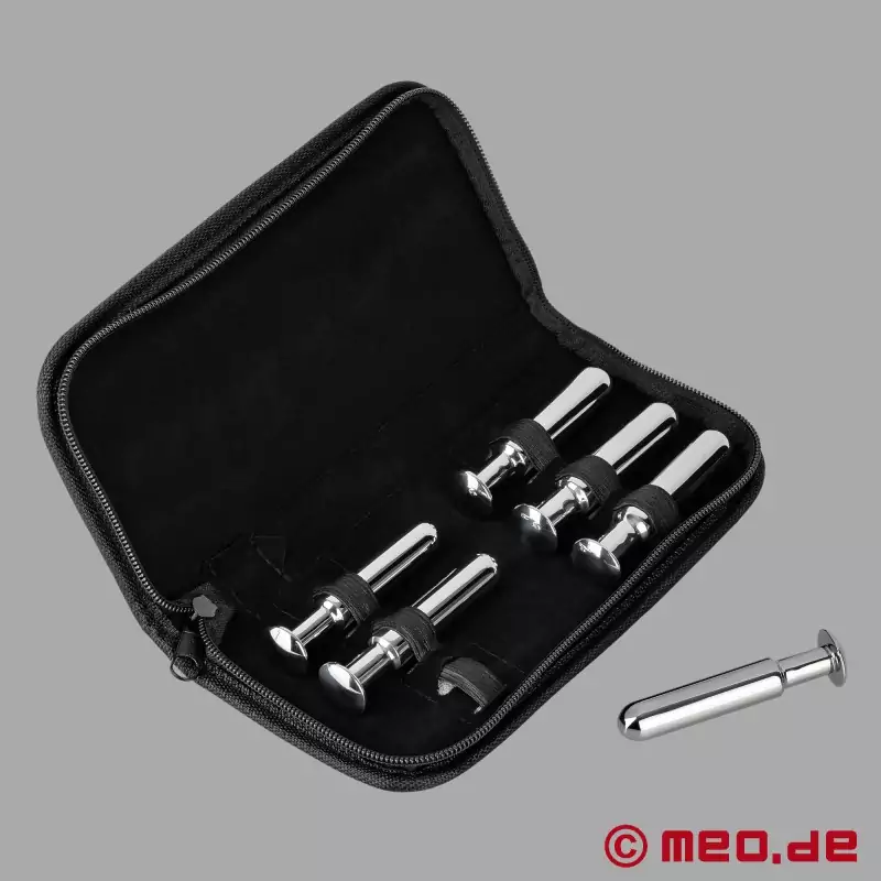 Zdecyduj się na niekończącą się przyjemność z tym kompletnym zestawem rozszerzaczy. Zestaw rozszerzaczy MEO ® jest wykonany z wysokiej jakości stali nierdzewnej klasy medycznej i oferuje bezpieczny i higieniczny sposób skutecznego rozciągania cewki moczowej za pomocą wtyczek penisa w 6 różnych rozmiarach. Wszystkie rozszerzadła mają ergonomiczny kształt i gwarantują wygodne użytkowanie. Nasze wtyczki do penisa mają bezszwową, zaokrągloną końcówkę ułatwiającą wkładanie i grzybkową główkę, która zapobiega zbyt głębokiemu włożeniu. Nasze wtyczki do penisa można oczywiście sterylizować. Zestaw jest dostarczany w eleganckim skórzanym etui do dyskretnego i higienicznego przechowywania.